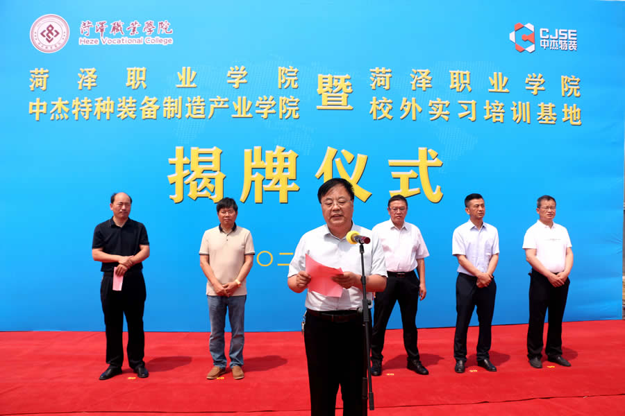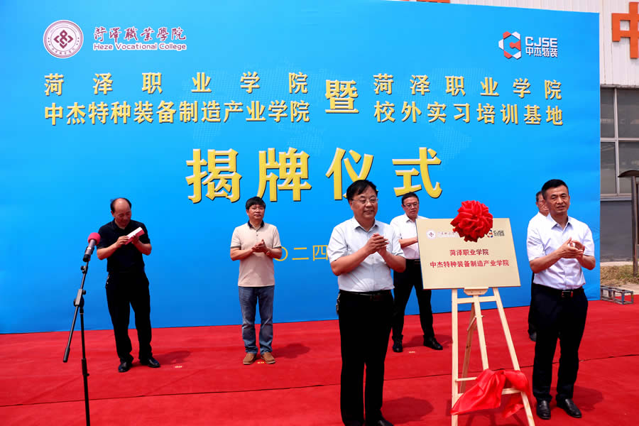 Subsequently, amidst the attention and anticipation of all attendees, the "Heze Vocational College Zhongjie Special Equipment Manufacturing Industry College" and "Heze Vocational College Off campus Internship and Training Base" were officially unveiled, announcing the establishment of the Manufacturing Industry College. This marks a new step in the cooperation and joint construction between Heze Vocational College and Shandong Zhongjie Special Equipment Co., Ltd., and opens a new era of industry education integration and collaborative education.